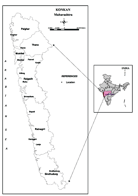 Konkan, Maharashtra covers an area of nearly 3.0 million hectares and represents a coastline of 720 km stretching south of Gujarat to north of Goa. The basaltic terrain receives rainfall averaging 2500–4000 mm.