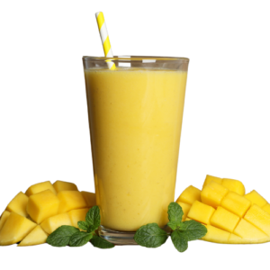A simple blend of fresh mangoes, milk, and optional ice cream.